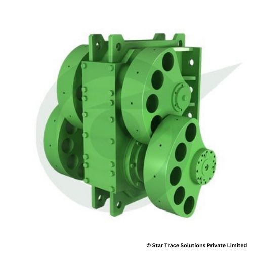 Star Trace Solutions Private Limited gear box is having two types of counter rotating shafts. Each counter shafts having two counter weights to produce linear motion for vibrating feeders, screens and so on. The special care should be taken while manufacturing the counter weights so that the static moment is delivered as we required.The special care should be taken while manufacturing the counter weights so that the static moment is delivered as we required. The gearbox contains hardened and ground gears in a cast housing. The additional holeas are provided in the counter weights is used for adjust the mass according to the required static moment. Our geared force exciter is customized products and depends upon the need with input speed ranging from 750-1500rpm and dynamic moments from 500kgcm-170,000kgcm. The bearings are accommodated in oil-lubricated due to high-speed operation of the gears.